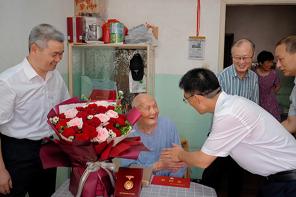 今年9月3日是中国人民抗日战争暨世界反法西斯战争胜利80周年纪念日。当天上午,市委副书记、市长刘存磊上门慰问抗战老战士李志富,现场颁发由党中央、国务院、中央军委授予的“中国人民抗日战争胜利80周年”纪念章,并致以崇高敬意和诚挚问候。副市长金天柱参加慰问。 ![]() 图为慰问活动现场。 抗战老战士李志富今年99岁,1945年光荣加入中国人民解放军。在李老家中,刘存磊代表市委、市政府送上慰问金,并详细询问老人身体健康状况和生活情况。