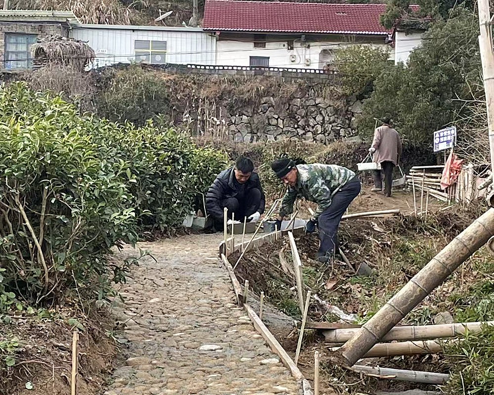 鉴于村集体经济薄弱的现实困境,杨亚力发挥驻村工作队队员的桥梁作用,向派出单位——安桐城乡发展集团争取支持,安桐城乡发展集团迅速响应,决定出资2万元予以支援。随后,从线路勘测、规划到施工,杨亚力全程跟踪协调,不到一周时间,一条宽约1.2米、长100米的硬化步道便完成修建,并铺设了鹅卵石防滑面层。