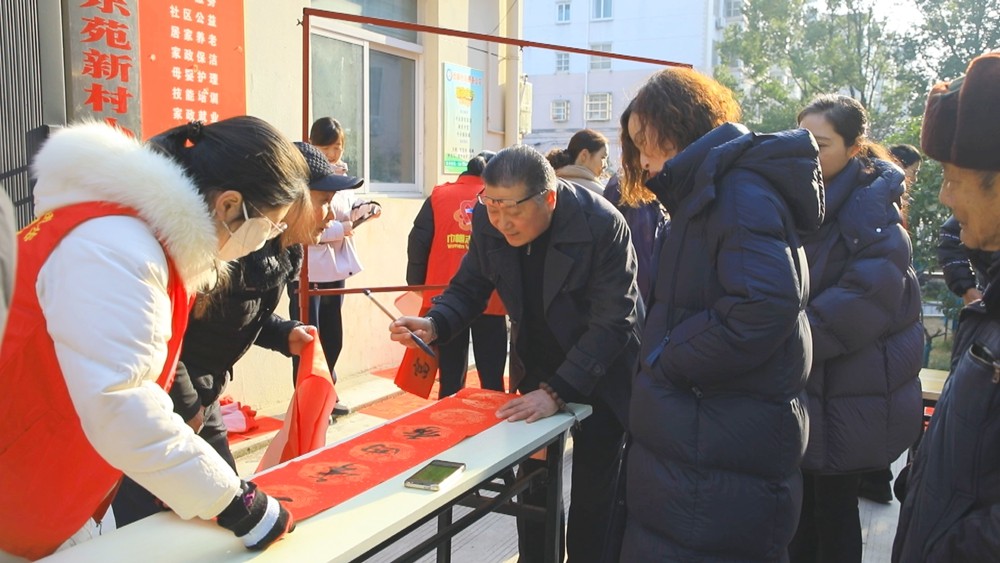 志愿者们的热情感染着现场每一位居民,大家围在桌旁,挑选着自己心仪的春联,或是驻足观看书法艺术之美,不时发出阵阵称赞,现场氛围热闹而温馨。居民姚红霞拿着刚领到的手写春联,脸上满是笑容,对社区举办的这次活动赞不绝口:“与机器印出来的春联相比,我觉得手写春联更有意义,不仅表达了对新年的祝福和期待,更是对中华优秀传统文化的一种传承。”
