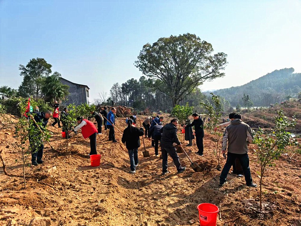 图为义务植树活动现场。