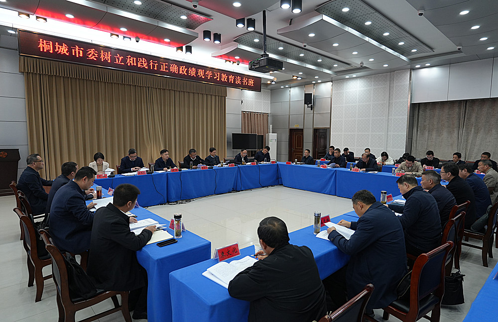 3月26日,桐城市委树立和践行正确政绩观学习教育读书班集中交流研讨暨理论学习中心组学习会议召开。市委书记章周中主持会议并带头作研讨发言。市委理论学习中心组组成人员洪长久、谢勇、水涛、汪杰贤、董红军、殷锐出席会议并依次作研讨发言。市领导汪名东、詹向前、张先伍、张树、刘决成出席会议,市领导占金涛列席会议。