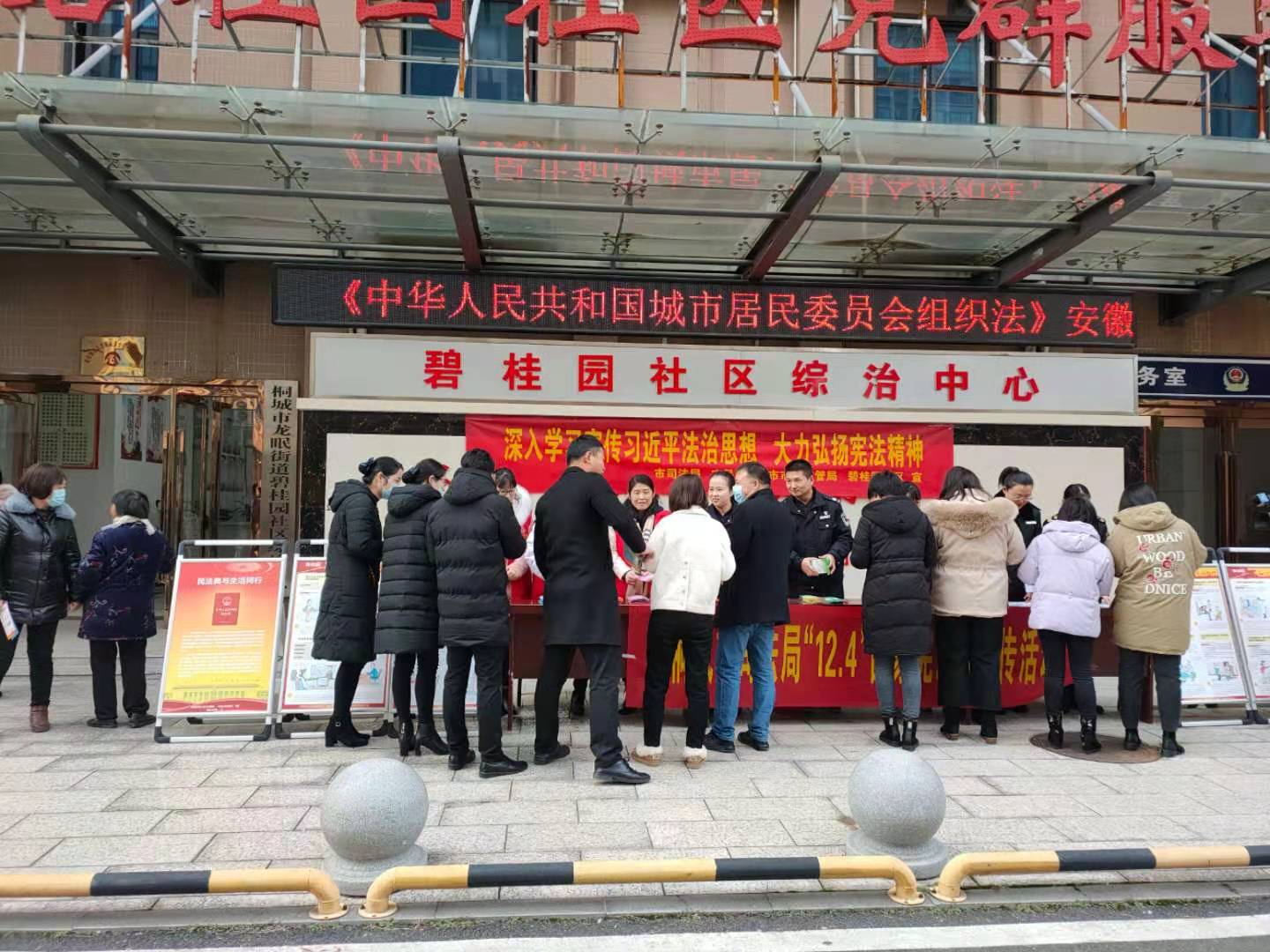 ![]() ![]() 2020年12月4日是第七个国家宪法宣传日,为了增强全社会的宪法意识、弘扬宪法精神。龙眠街道碧桂园社区与市司法局、市民政局、市监管局共同组织普法志愿者开展“12·4”国家宪法日宣传活动。 活动以“深入学习宣传习近平法治思想、大力弘扬宪法精神”为主题。现场人头攒动,普法志愿者热情的笑脸、耐心的解说吸引了不少群众驻足,广大群众主动索要法律宣传单、明白纸,积极咨询学习残疾人保障、妇女权益保障等法律知识。“今天比较冷,这些志愿者还能这么耐心、热情地给我提供咨询,真是不容易,要给他们点个赞!”一位前来咨询的老大爷对普法志愿者们竖起了大拇指。 此次活动共悬挂普法标语10余条,展出普法展板7幅,发放《崇尚宪法权威 维护法律尊严》《桐城市法律援助中心--农民工维权篇》《青少年法律知识读本》等法制宣传材料150余份。通过一系列宣传活动,群众对宪法等相关法律知识有了更多了解,增强了广大居民群众尊崇宪法、遵守宪法、维护宪法、运用宪法、学习宪法的意识,真正把法治宣传教育融入百姓生活,营造了学法、懂法、用法、守法的良好社区氛围。 |