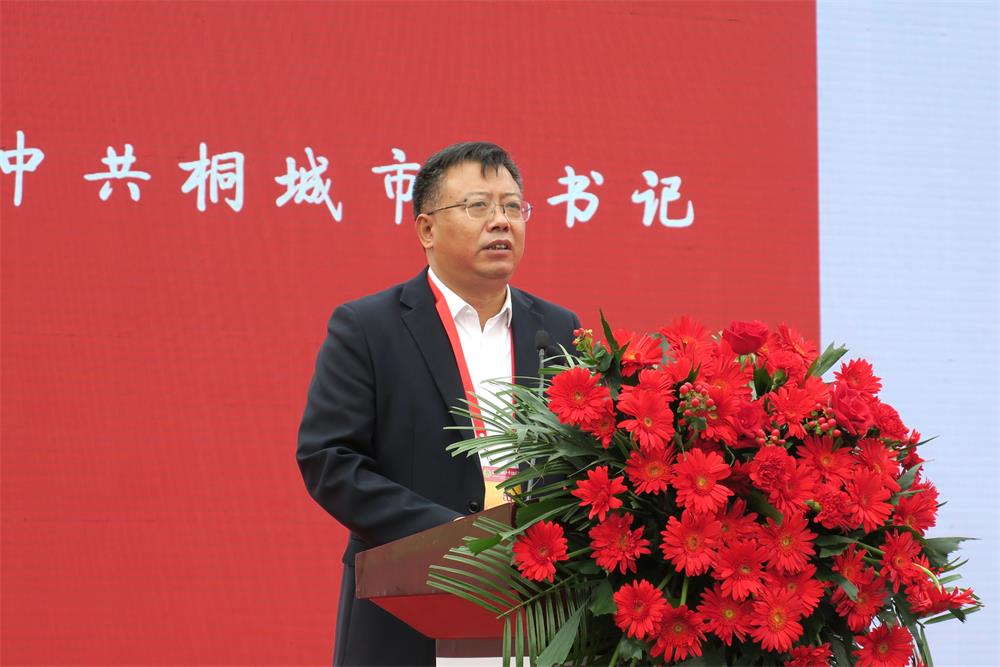 桐城市委书记章周中代表桐城市委市政府和全市人民,向莅临庆典的各位领导、嘉宾表示最热烈的欢迎,向为桐中改革发展作出重要贡献的历任校长和各位老师表示最崇高的敬意。他说,百廿年开拓与求索,百廿年拼搏与奋进,桐城中学始终与祖国共命运、与时代同发展,一路风雨兼程,一路创造辉煌,培育涵养了深沉厚重的家国情怀、不畏艰苦的创业精神、开明开放的办学理念、矢志不渝的争先劲头……这些殊为可贵的“桐中特质”,是桐中永葆青春的基因密码,也是一代代桐中人凯歌前行的不竭动力。