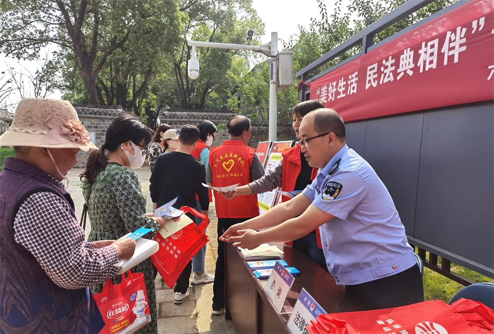 今年5月是第三个民法典宣传月,为全面贯彻落实党的二十大精神,推动民法典学习宣传往深里走、往实里走、往心里走,连日来,桐城各地各部门以“美好生活·民法典相伴”为主题,创新方法、丰富载体,广泛开展民法典学习宣传活动,掀起新一轮民法典宣传新热潮,切实增强全民的法治思维,夯实知法、懂法、学法、用法、守法的群众基础。![]() 图为5月13日,市司法局文昌司法所在六尺巷景区开展民法典宣讲活动。 找准着力点,构建“大普法”新格局。我市落实“谁执法谁普法”责任制,市直各单位、镇(街道)、村(社区)多方联动,深入开展送民法典进机关、进校园、进乡村、进企业等学习宣传活动,构建上下协作、层层落实、齐心合力的“大普法”新格局。目前,全市共开展民法典专题宣传60多场,发放宣传单页1万余份,受理群众咨询300人次。