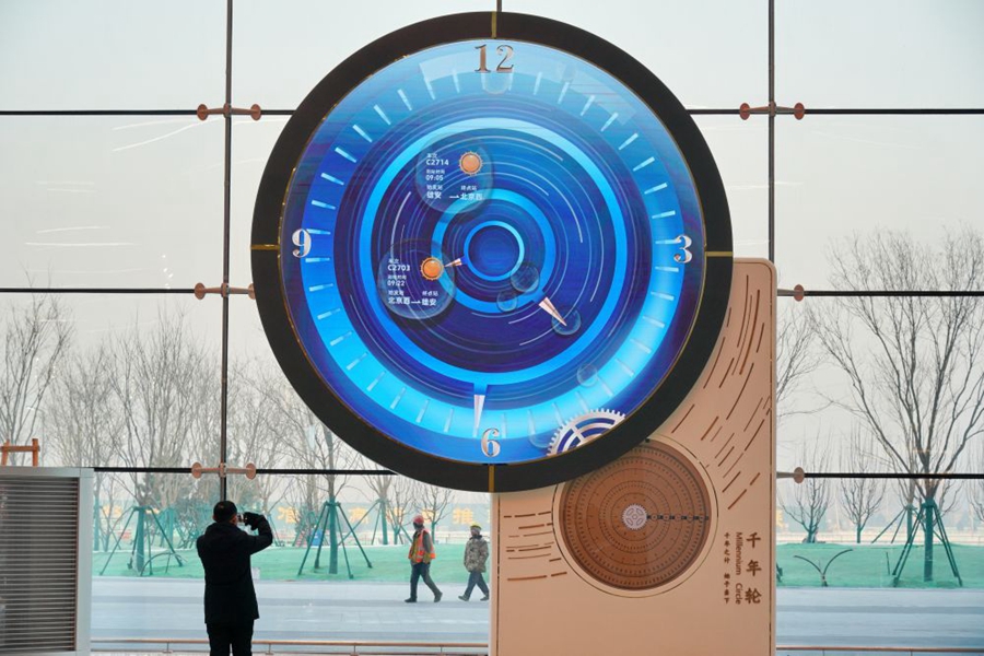 旅客在京雄城际铁路雄安站内拍摄“千年轮”(2020年12月27日摄)。新华社记者 牟宇 摄 今天,中国式现代化的宏伟蓝图在神州大地徐徐铺展。扎根中华大地,心中装着人民,新时代中国共产党人奋斗的底气更加充足,前进的步伐更加有力,团结带领亿万人民创造新的历史伟业的意志更加坚定! |