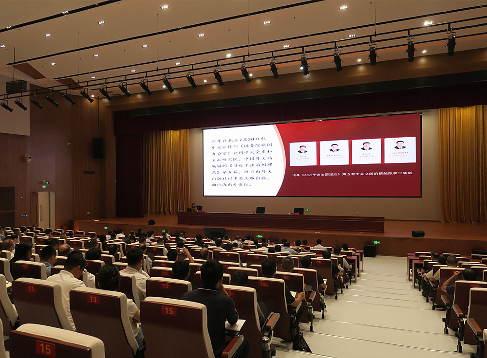 10月11日,“举旗帜·送理论”学习《习近平谈治国理政》第五卷省级层面专题宣讲报告会在桐举行,旨在深入学习贯彻习近平新时代中国特色社会主义思想,推动党的创新理论深入基层、深入人心、指导实践。省委讲师团理论宣讲专家库成员、省委讲师团宣讲工作处处长马静作宣讲报告。桐城市委书记章周中主持宣讲报告会。我市领导刘存磊、洪长久、谢文婕、方钱方、祖聪、徐良平、汪杰贤、董红军、殷锐等聆听宣讲报告。