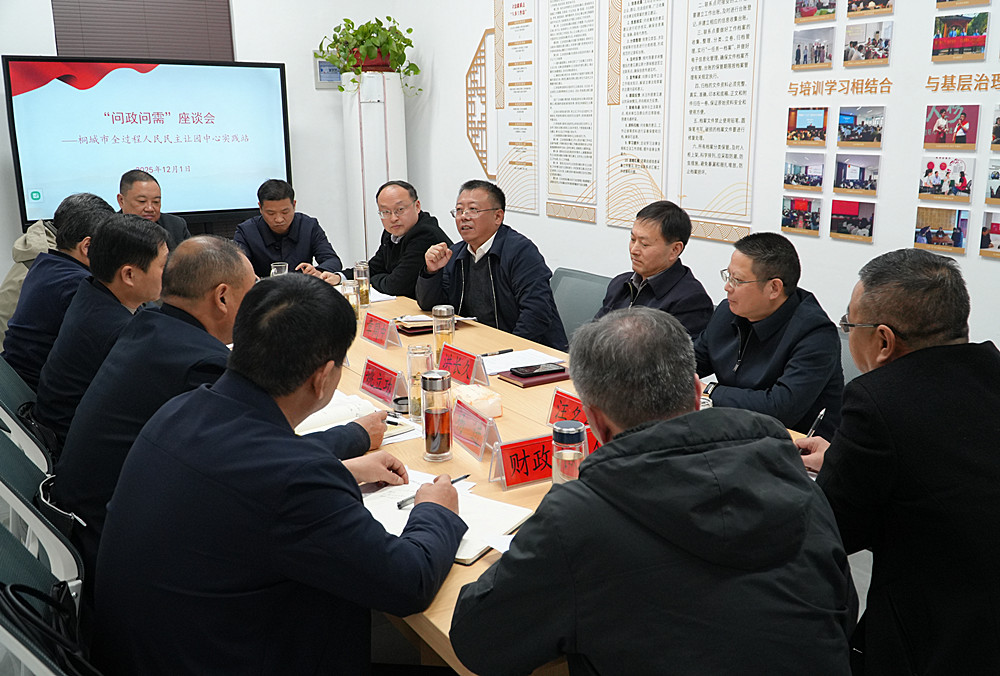 12月1日,市委书记章周中在让园中心实践站主持召开“问政问需惠民生”座谈会,就桐城“十五五”规划编制、2026年度民生实事候选项目听取人大代表的意见建议。市人大常委会主任洪长久,市委常委、副市长水涛,市人大常委会副主任汪名东出席座谈会。
