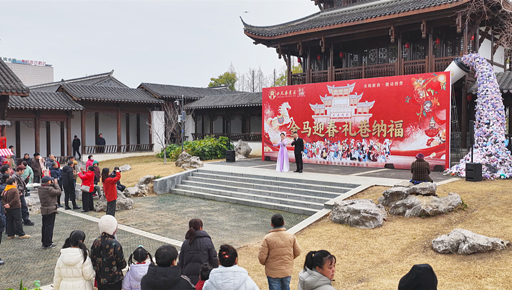 过大年,少不了“看大戏”。当日上午9点30分,叠翠楼大舞台前早已人头攒动,黄梅戏表演准时开演。《谁料皇榜中状元》《夫妻观灯》等黄梅戏经典唱段轮番上演,演员们唱腔地道、扮相精致,婉转悠扬的黄梅雅韵在古巷间飘荡,让戏迷朋友们听得直呼“过瘾”,台下掌声、叫好声接连不断,不少游客跟着熟悉的旋律轻声哼唱,沉浸式感受传统戏曲的独特魅力。