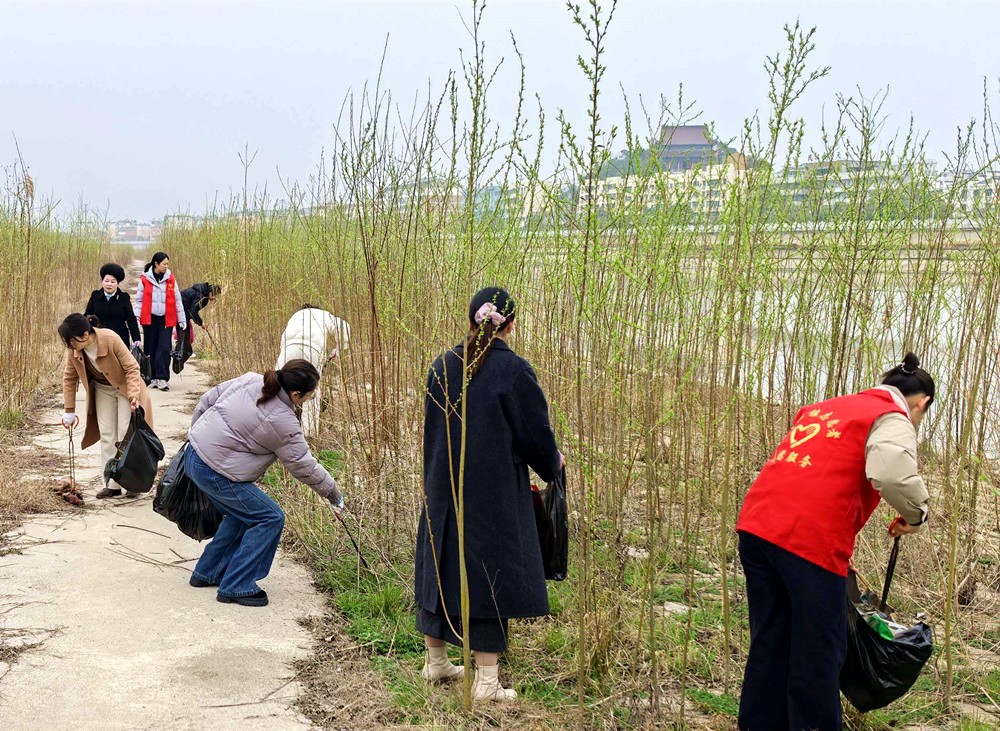 3月5日,鲟鱼镇机关和社区的女职工代表齐聚长江岸线鲟鱼段,捡拾沿岸垃圾,以实际行动守护一江碧水。