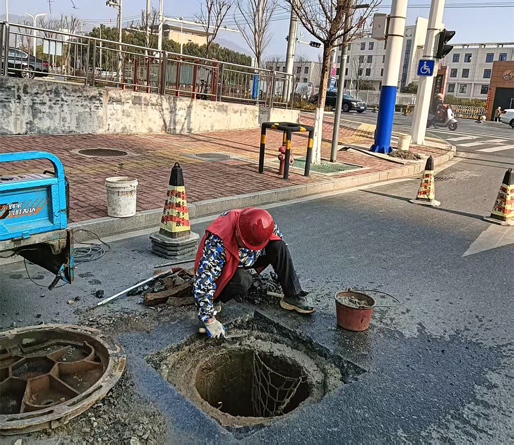 接到市民诉求后,该公司立即安排专业人员赶赴现场,细致勘查“问题井盖”,找准症结,确定维修方案。为高效消除安全隐患,该公司当天组织施工人员及相关材料进场,采用混凝土加固工艺,精准加固下沉的井体,确保井体与路面衔接平整、牢固,从根源上解决了井盖翘起、发出异响的问题。